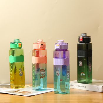 スクエアデザイン漫画PPプラスチック製漏れ止め水差しストロー食器洗い機付き安全使い捨て旅行ボトルフィットネス学校用