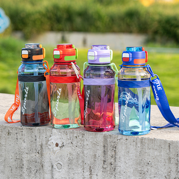 Cốc đeo chéo cơ thể cầm tay chai nước bằng nhựa thể thao dung tích lớn có ống hút