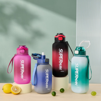 Chai nước lớn 1L Gradient với quy mô thời gian chống rò rỉ và dây buộc để dễ dàng mang theo cho tập luyện-Đồ uống bằng nhựa